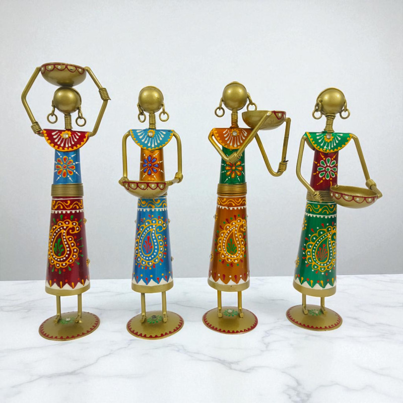 Handcrafted Metal Rajasthani Lady Worker Figurines - Set of 4 Traditional Indian Village Women Statues - Ethnic Decorative Showpiece for Home Office and Living Room Decor (Multicolor)  Handcrafted Metal Rajasthani Lady Worker Figurines - Set of 4 Traditional Indian Village Women Statues - Ethnic Decorative Showpiece for Home Office and Living Room Decor (Multicolor)  Handcrafted Metal Rajasthani Lady Worker Figurines - Set of 4 Traditional Indian Village Women Statues - Ethnic Decorative Showpiece for Home Office and Living Room Decor (Multicolor)  Handcrafted Metal Rajasthani Lady Worker Figurines - Set of 4 Traditional Indian Village Women Statues - Ethnic Decorative Showpiece for Home Office and Living Room Decor (Multicolor)  Handcrafted Metal Rajasthani Lady Worker Figurines - Set of 4 Traditional Indian Village Women Statues - Ethnic Decorative Showpiece for Home Office and Living Room Decor (Multicolor)