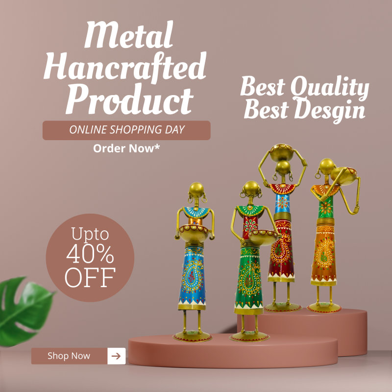 Celebrate the beauty of rural Indian life with this Handcrafted Rajasthani Lady Worker Set. This set of four unique figurines depicts village women in various traditional working poses—carrying water pots and bowls—reflecting the hardworking spirit of Rajasthani culture. Each metal showpiece is a vibrant example of Indian folk art, designed to bring a soulful and ethnic touch to your home or office.