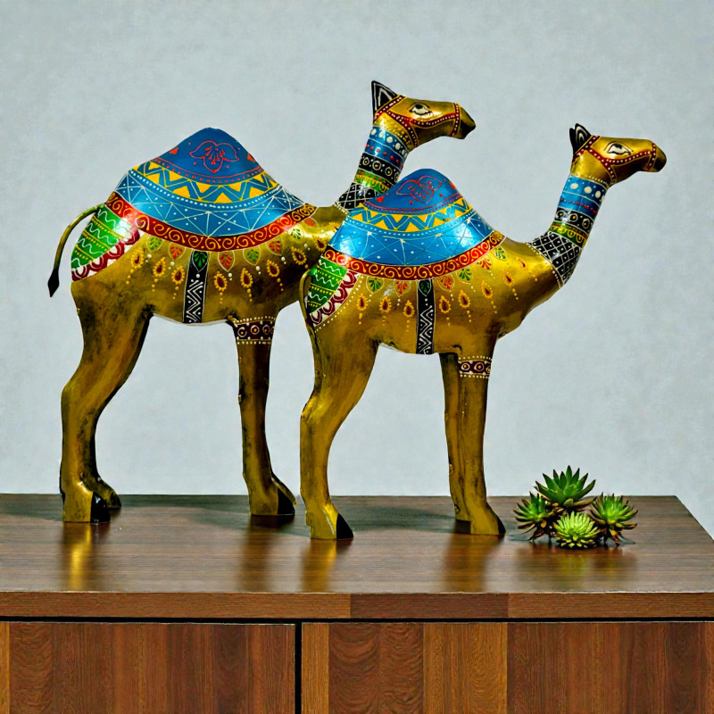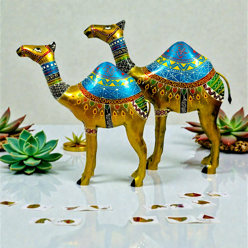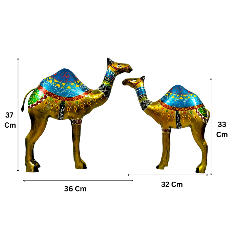 Handpainted Set of 2 Metal Camel (Oont) Figurines for Home Decor and Gifting